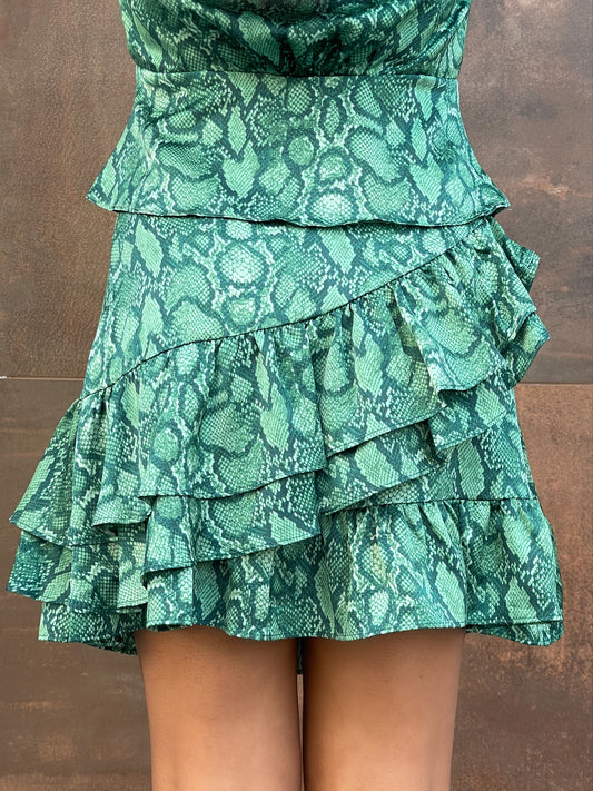 Sianey Snake Print Puff Sleeve Peplum Blouse